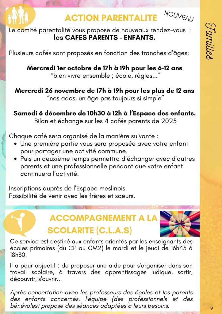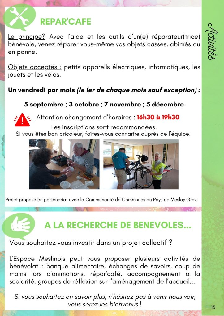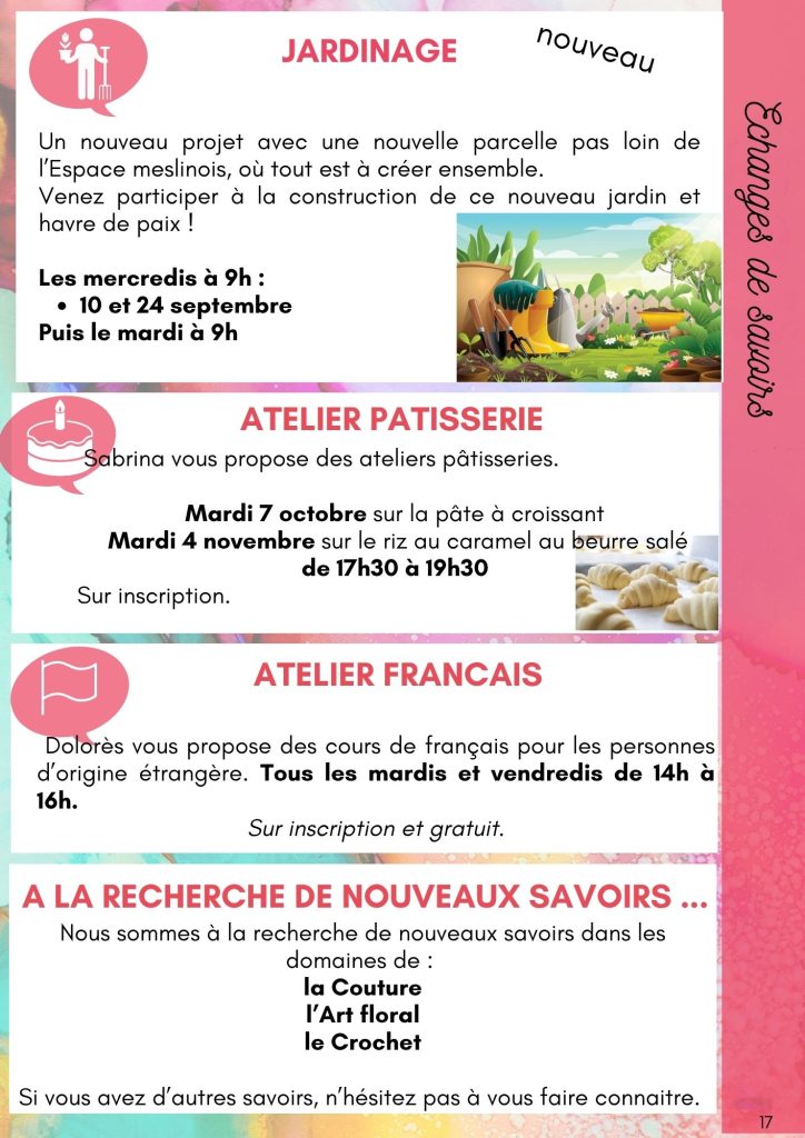C’est à partir de vos besoins, de vos envies, de vos projets que les activités et animations voient le jour. Alors n’hésitez pas à pousser la porte de l’Espace Meslinois!