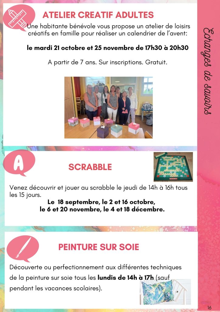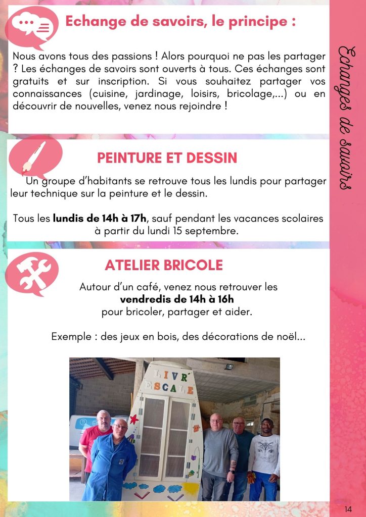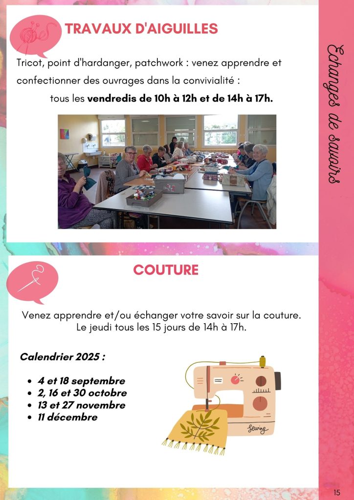 – des échanges de savoirs : couture, tricot, pastel, acrylique…