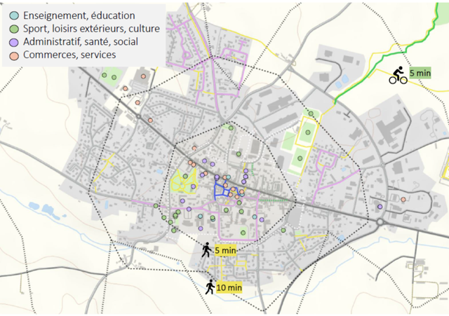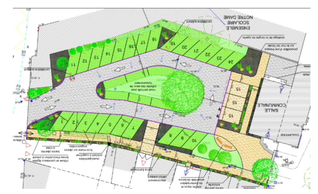 Comme le souligne le plan guide, les aménagements doux existants sont variés mais manquent parfois de lisibilité, et certaines liaisons restent à créer pour renforcer la continuité des parcours. Pour le bureau d’études, le stationnement à cheval sur les trottoirs, pratique encore fréquente dans le centre, serait à proscrire car il compromet la sécurité des piétons. Pour les cyclistes, le développement du double sens cyclable est encouragé : un aménagement simple, sûr et efficace pour faciliter les déplacements à vélo.